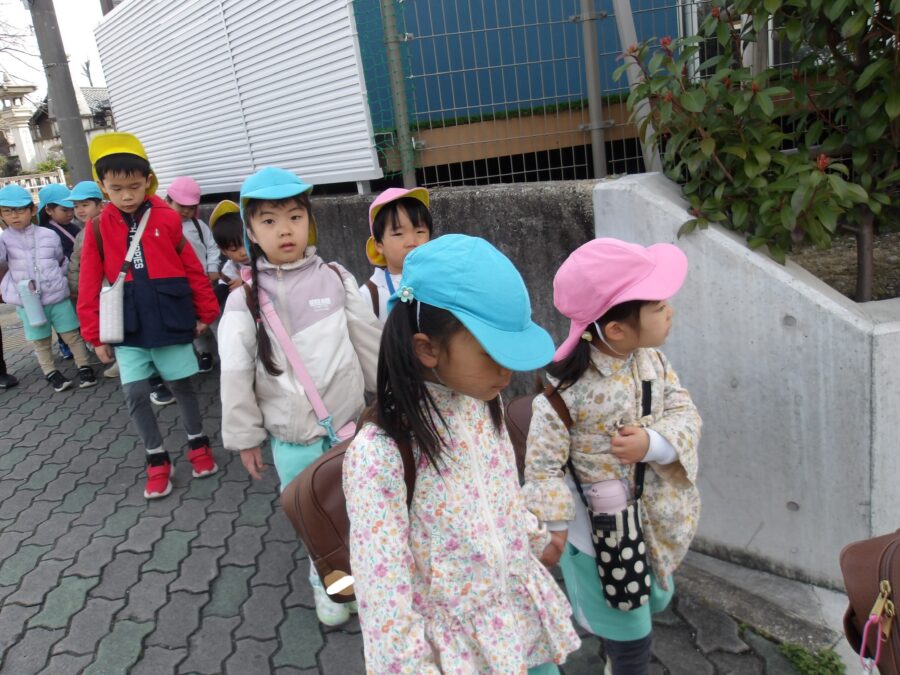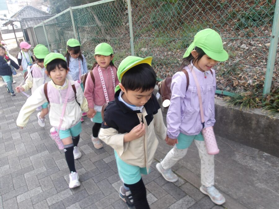 たいよう組さんはお友達と手を繋ぎ、にじ組さんとそら組さんで手を繋いで千種公園に向かいました✨