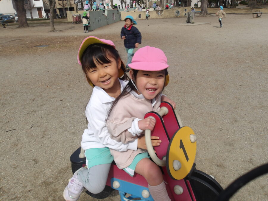 千種公園に着いて、午前中は遊具で遊んだり、鬼ごっこをして楽しく遊んでいました![]()