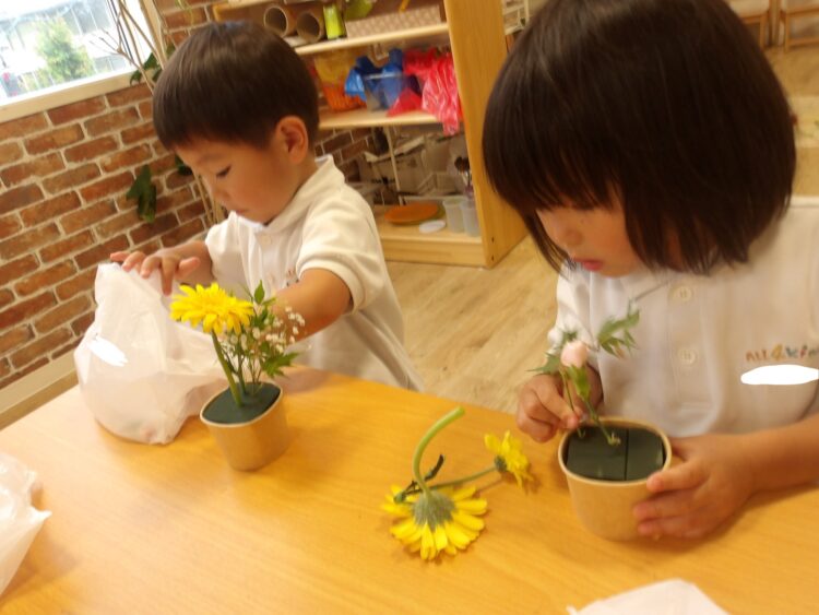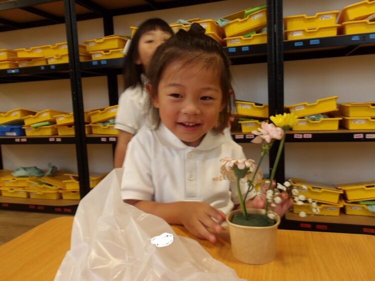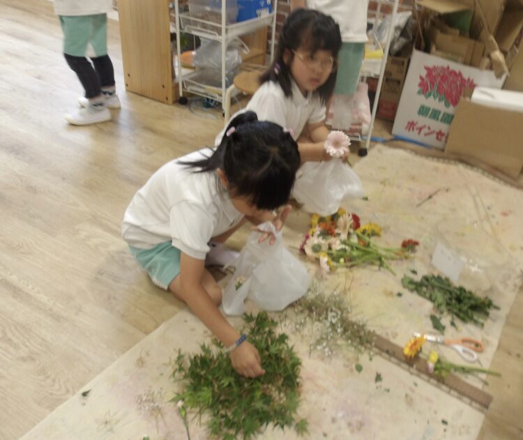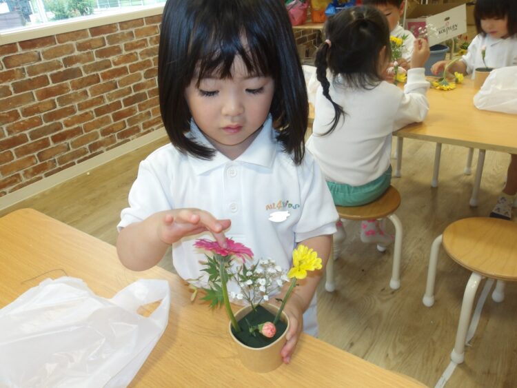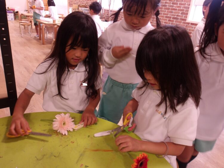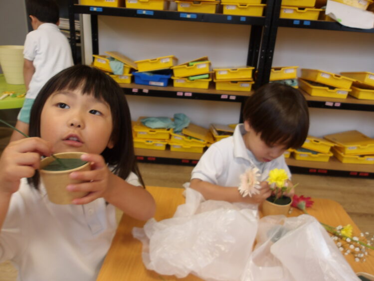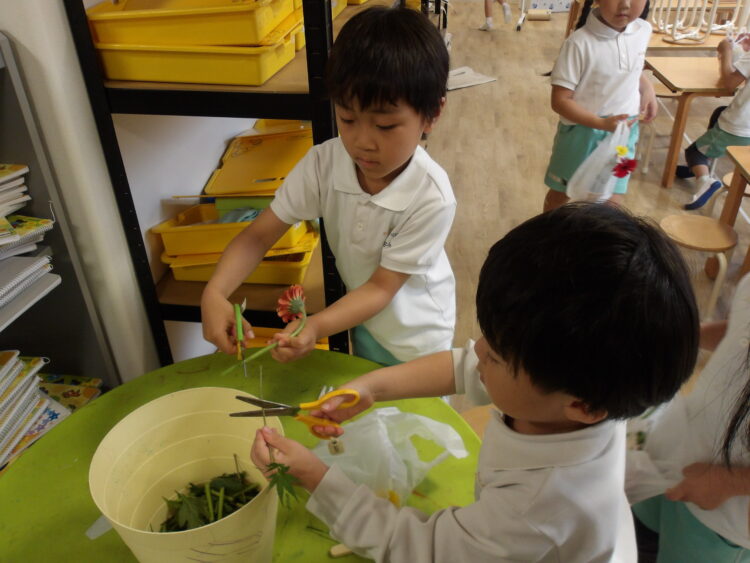 ガーベラが何色かあったので、お友達同士で相談したり、即決で好きな色を選んだり、、