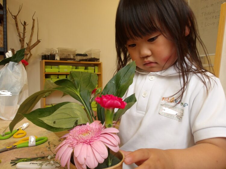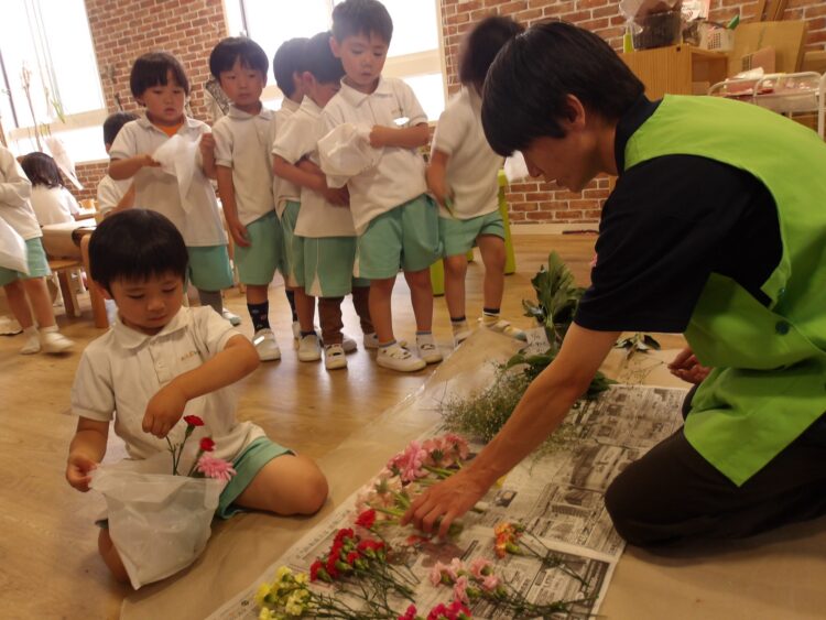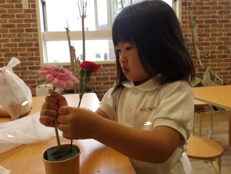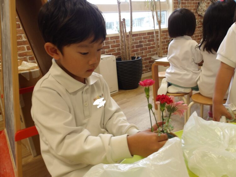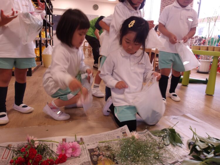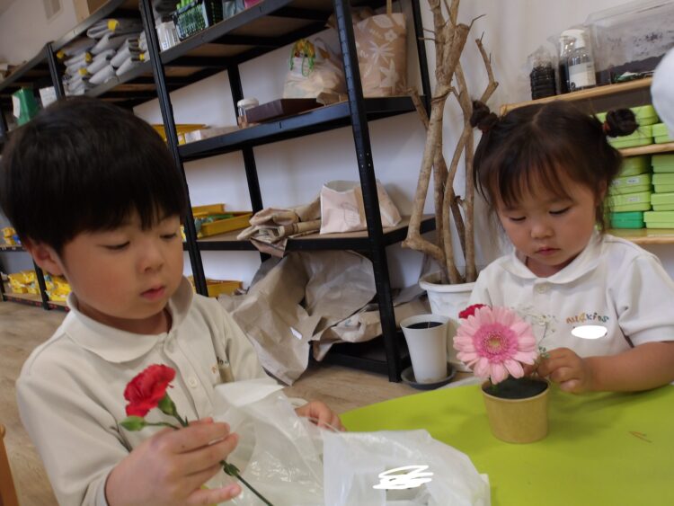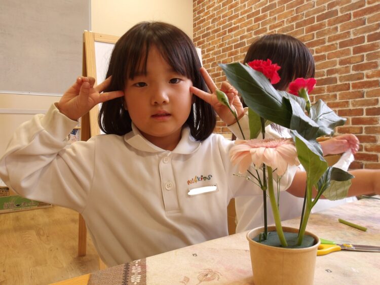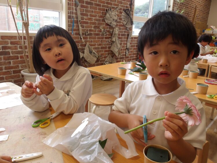 にじさんとたいようさんは自分のハサミで好きな長さに調整し、どのクラスも素敵なフラワーアートとなりました💐