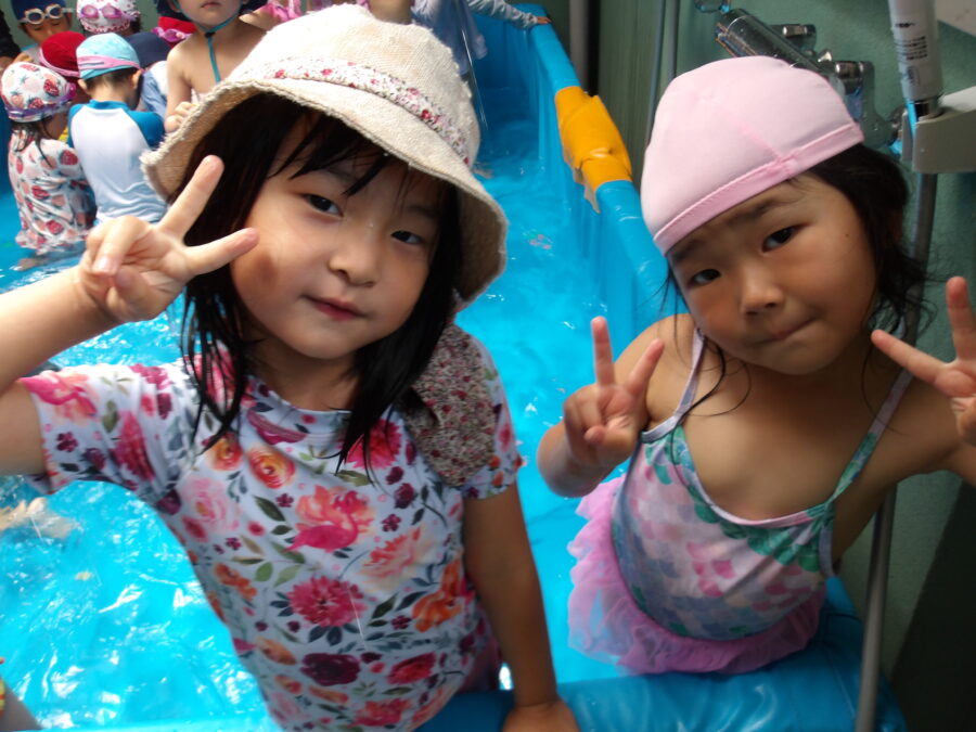 今日の水は冷たかったので「冷た〜い!」と言う子もいました![]()