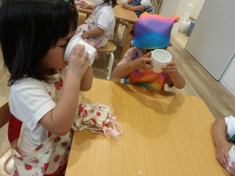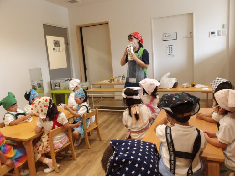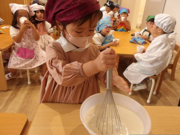 その後は缶のシロップ、牛乳、もみもみしたフルーツを混ぜたらできあがり!