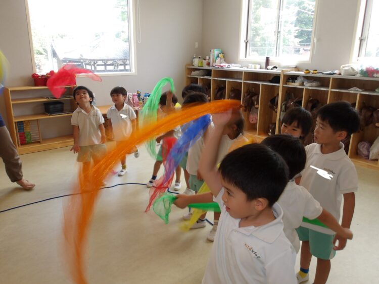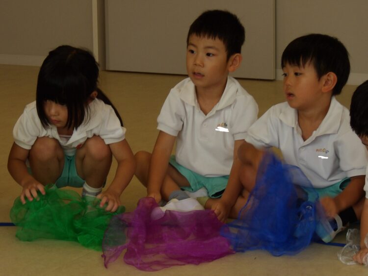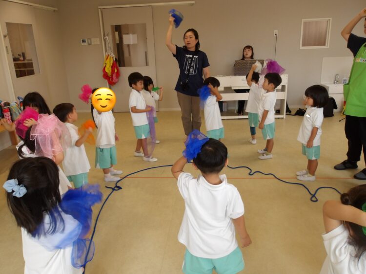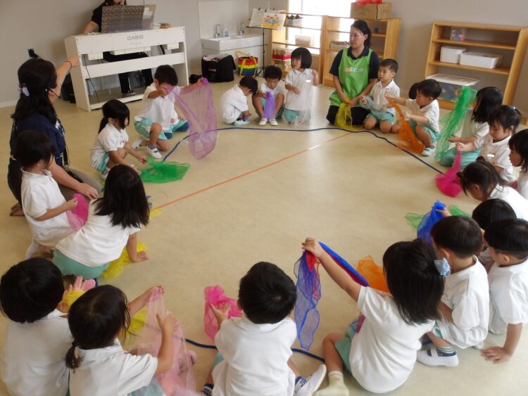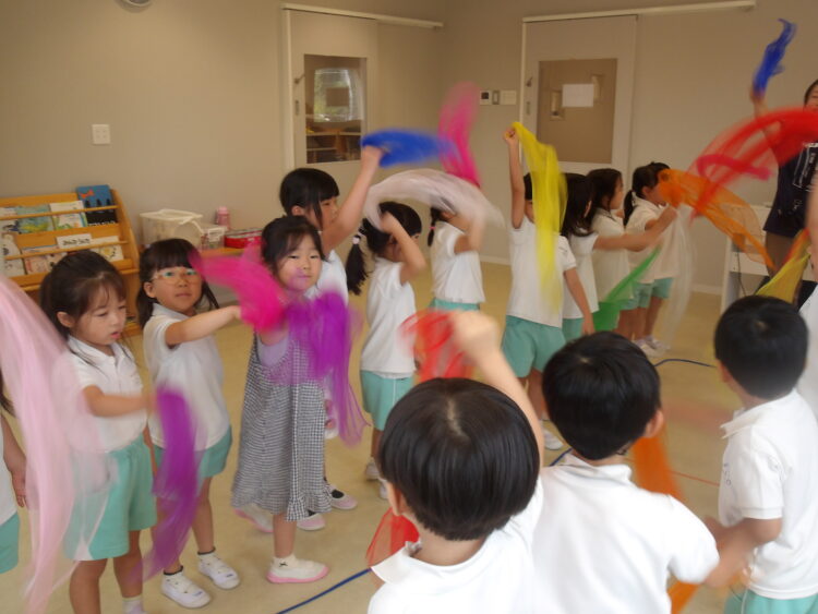水鉄砲の歌に合わせてシフォンを使ったり