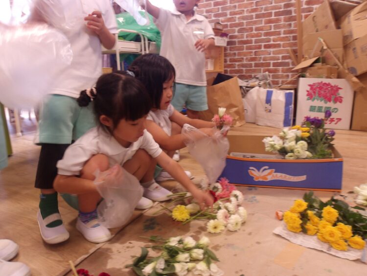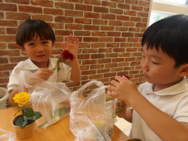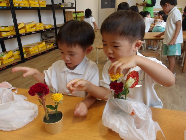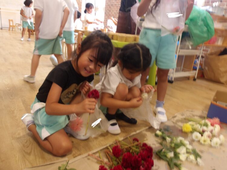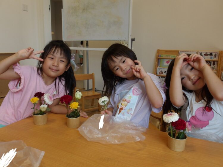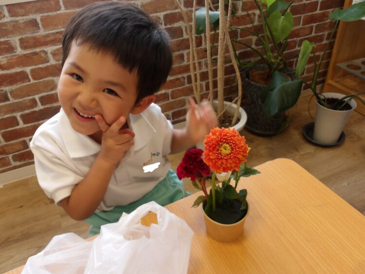 今月のお花はとってもカラフルでみんな嬉しそうに見せてくれました!