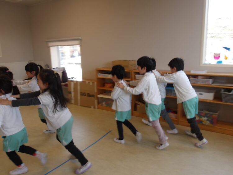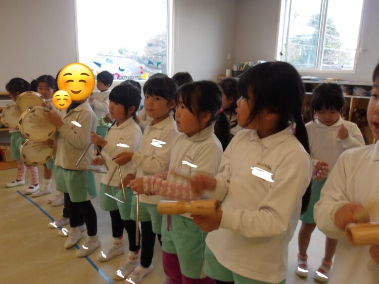 音楽に合わせてサンタさんになりきって煙突探しをしたり、トナカイになりきってかけ足したり、みんなであわてんぼうのサンタクロースを歌いながら楽器を演奏したり…