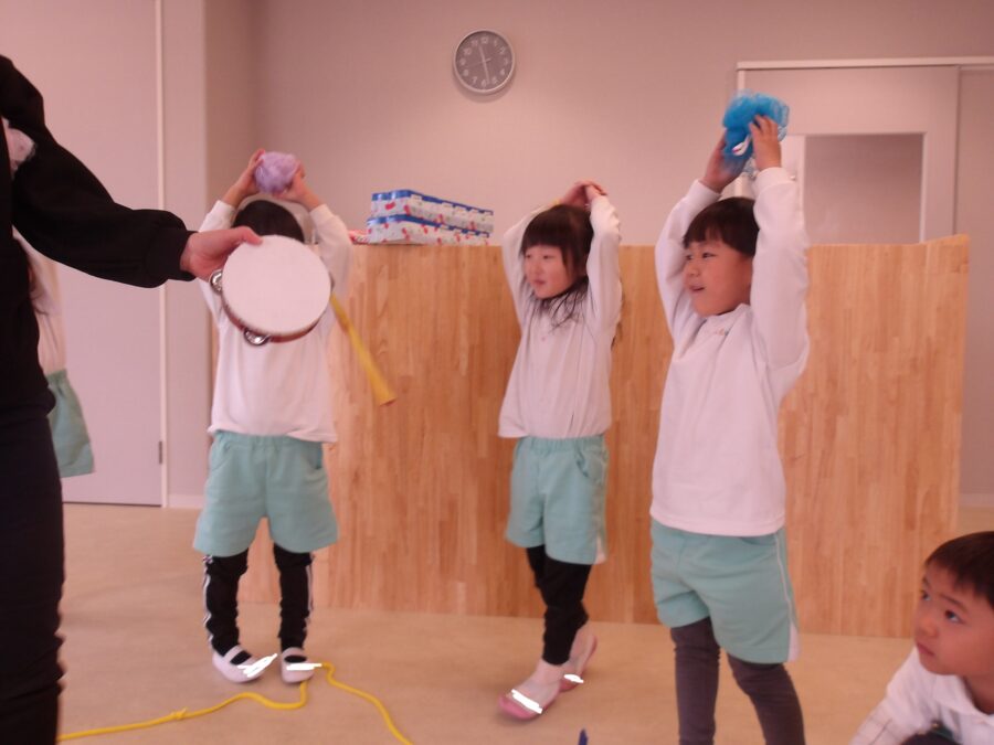 ピアノの音に合わせて体を動かしたり、手を叩いたり