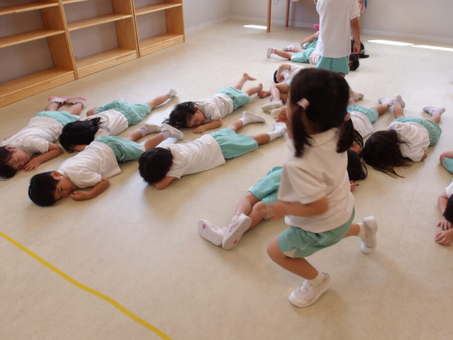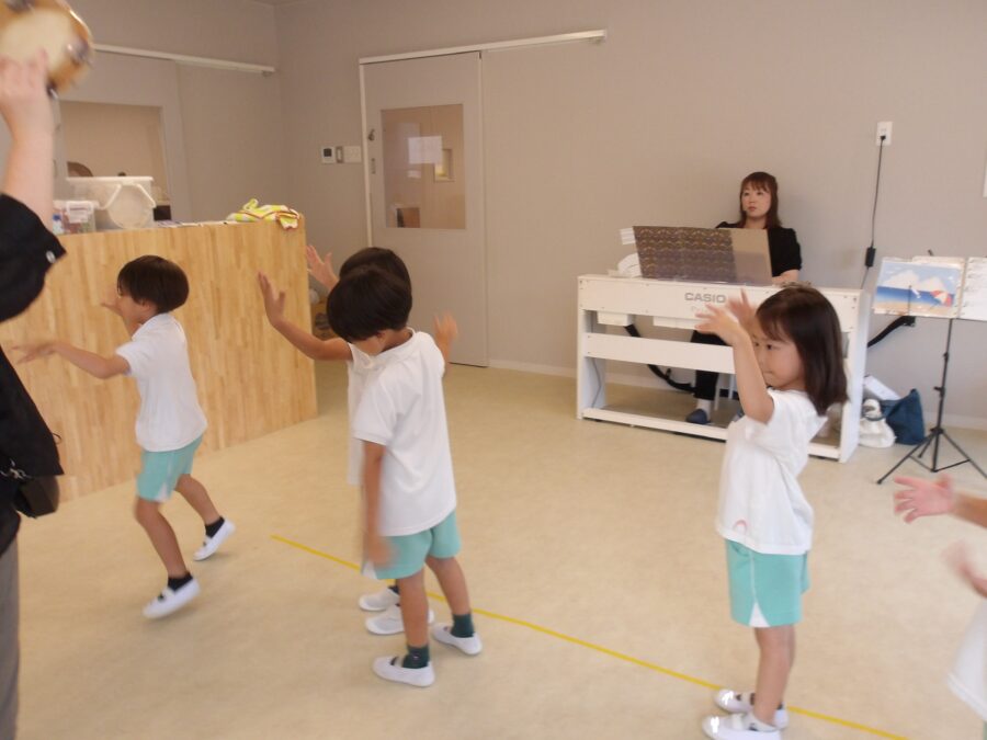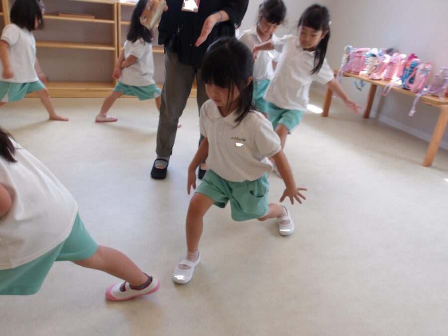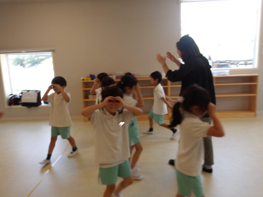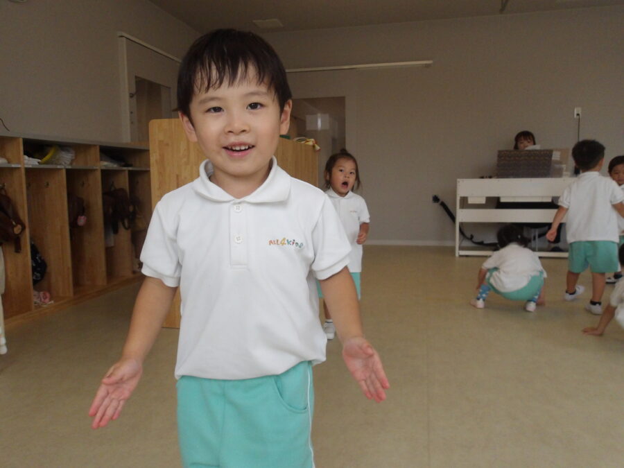 まず最初は円になってピアノに合わせて遅くなったり、ジャンプをしたりしました!難しい動きもありましたが上手にできていました☺️
