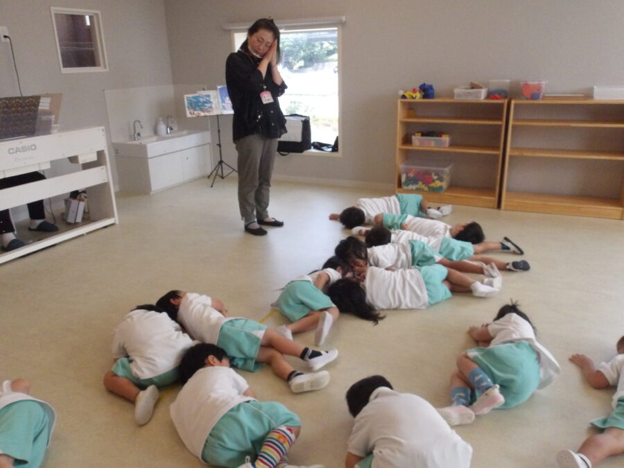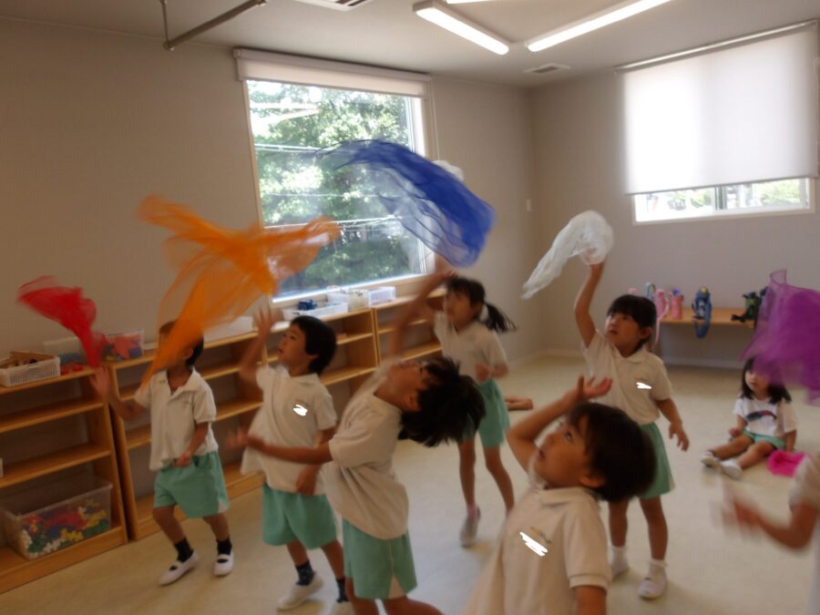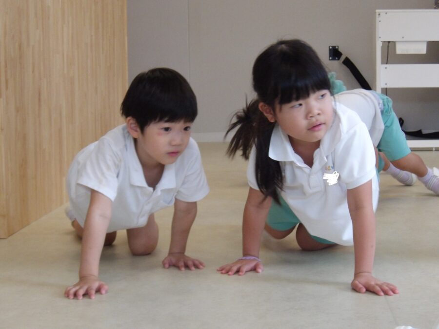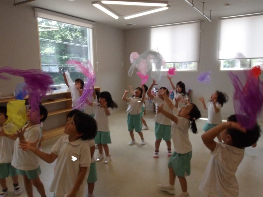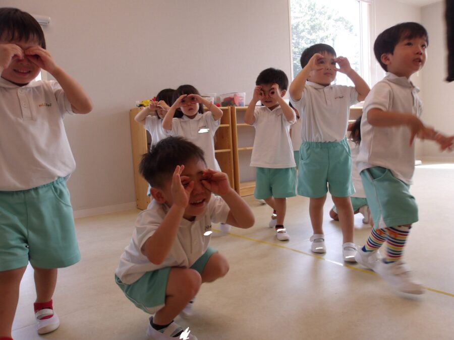まず最初は円になってピアノに合わせて遅くなったり、ジャンプをしたりしました!難しい動きもありましたが上手にできていました☺️