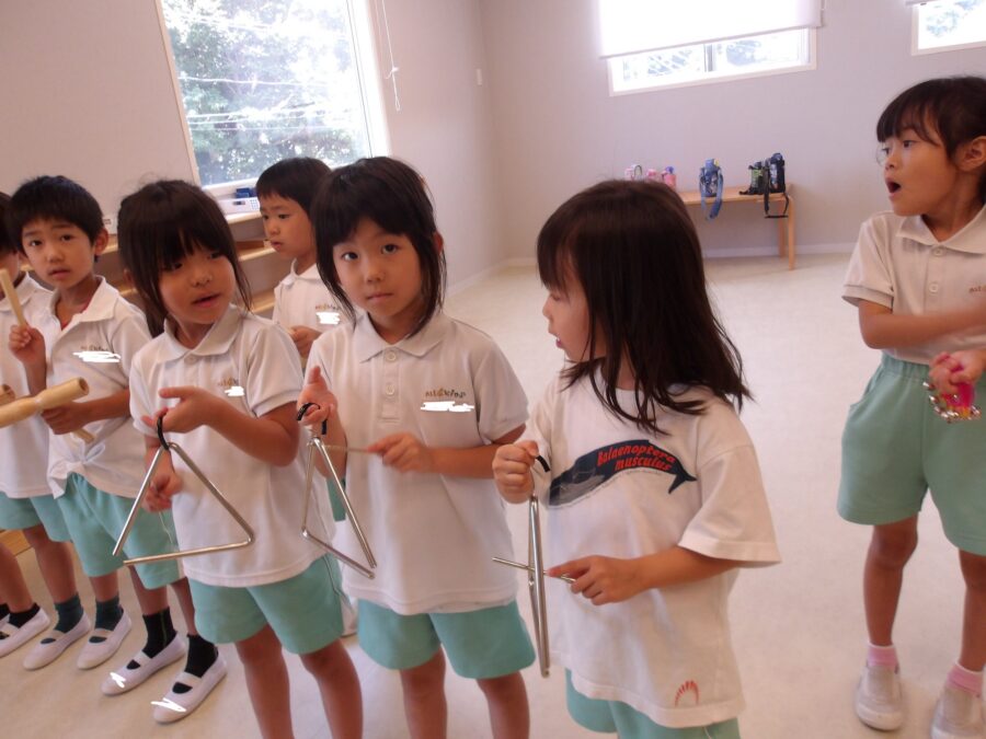 たいよう組さんは鈴、トライアングルなど色々な楽器を使って演奏しました🎷