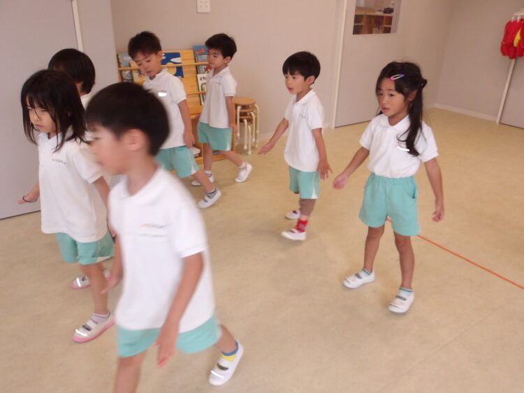 今回は音に合わせて歩いたり止まったり、手を叩いたり🖐️