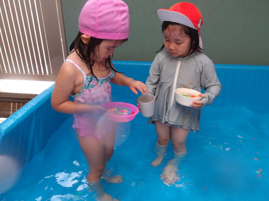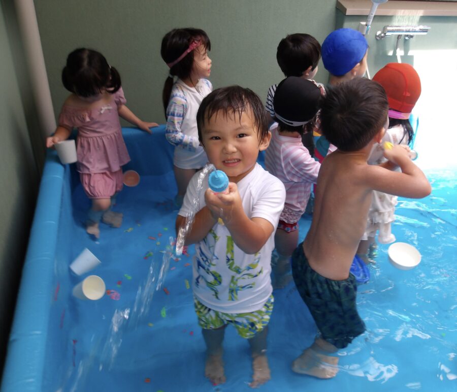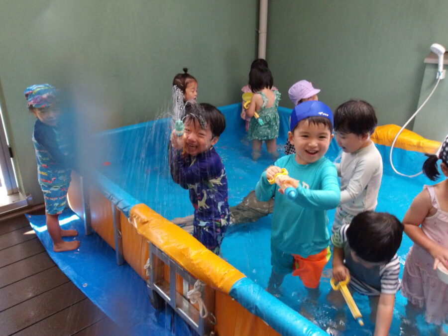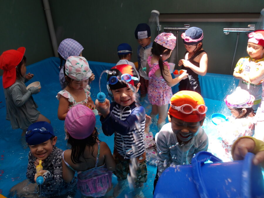 今日も絶好のプール日和になったので、そら組さん、にじ組さんは