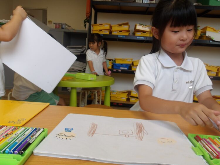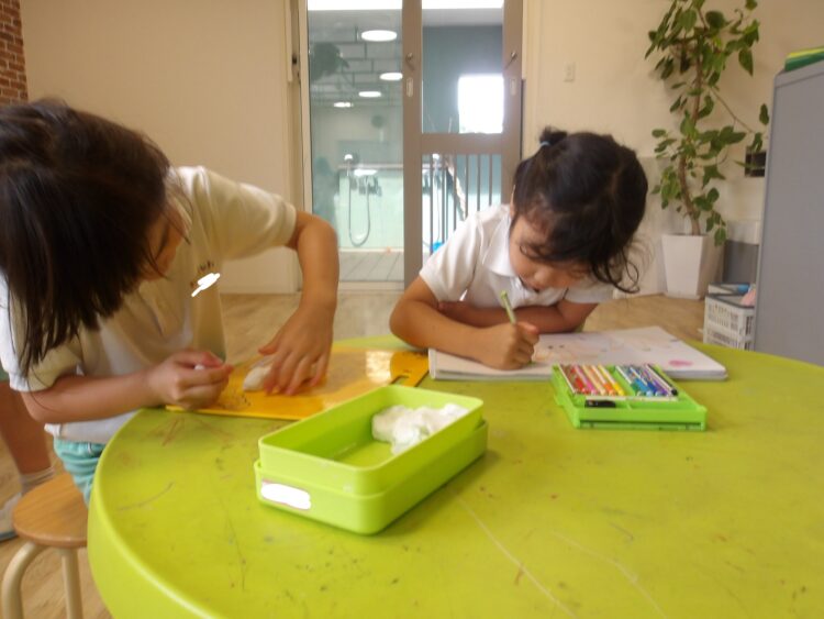 お部屋では自由遊びをしながら、書きたいお友達は短冊に願い事を書きました🎋