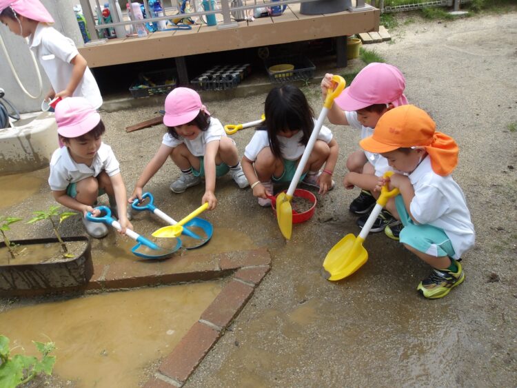 泥をつかって遊んだり