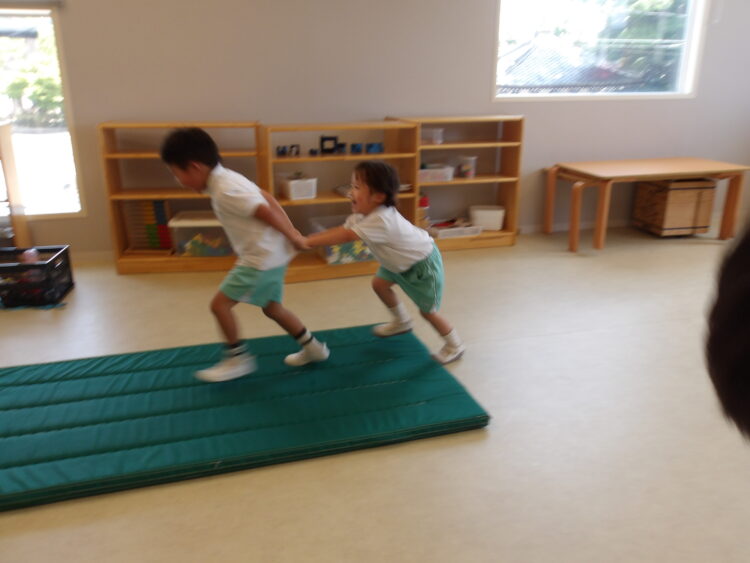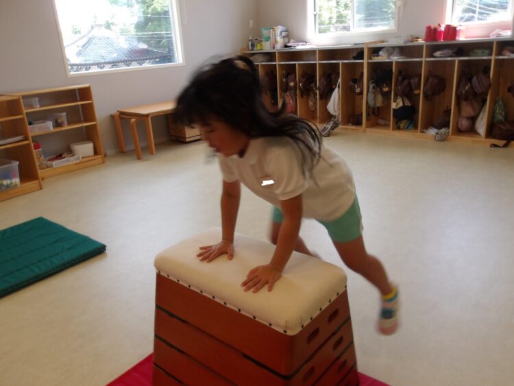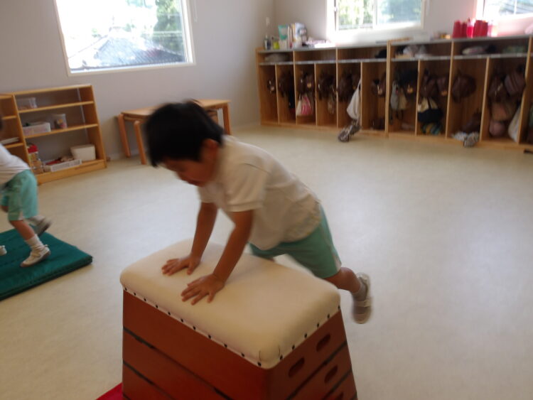 スチームの部屋では跳び箱を跳んだり、マットをして体をたくさん動かしました💪