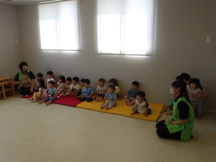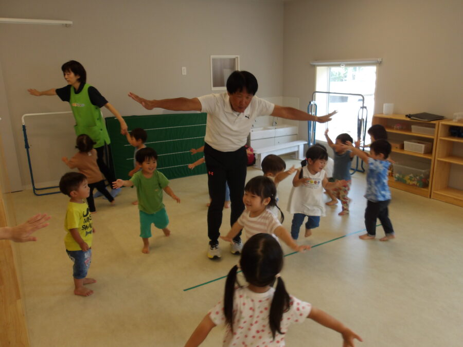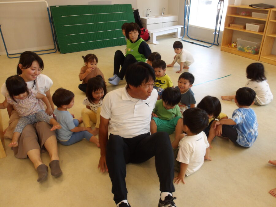 「今日の体操で何をやるかな〜」とみんなワクワクしながら、興味津々に体操内容について聞いています![]()