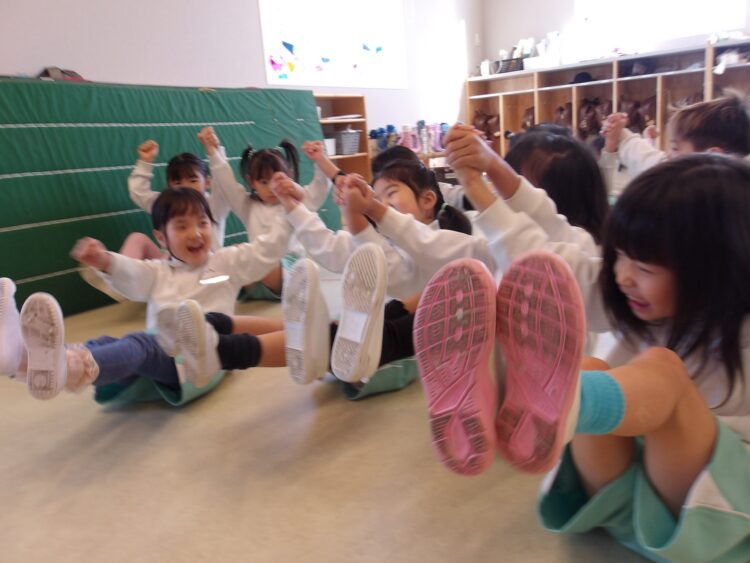 お友だちと支え合いながら倒れないように一生懸命バランスをとっていた子どもたち。とってもニコニコで挑戦していました!