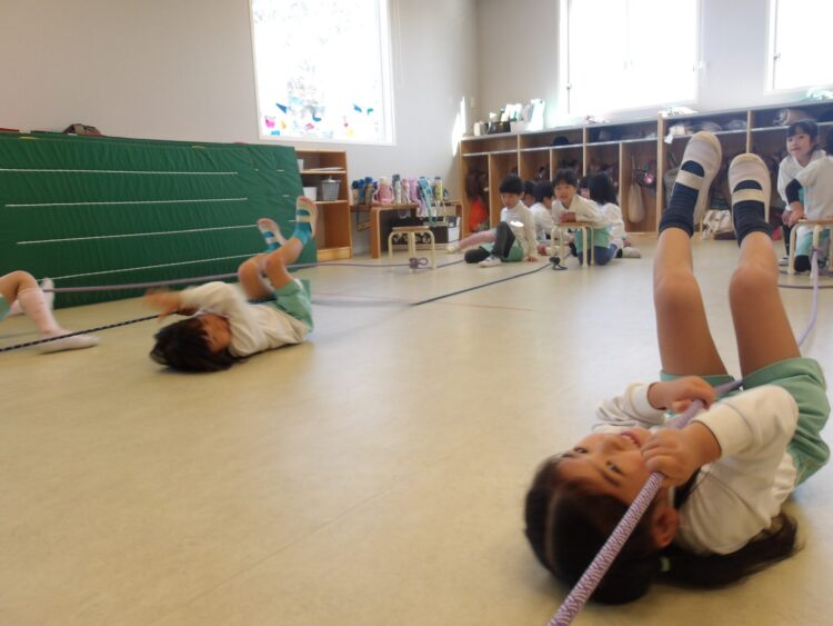 そら組さんはマグロ釣りに挑戦!そら組さんが縄を持つと先生に勢いよく釣りあげられ、みんな大盛り上がりでした
