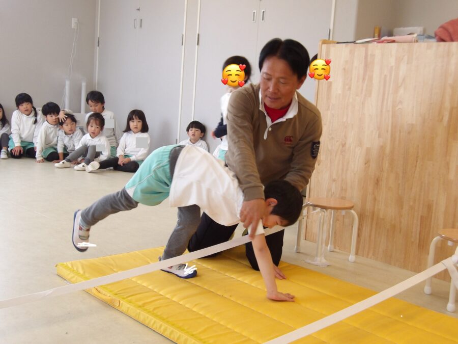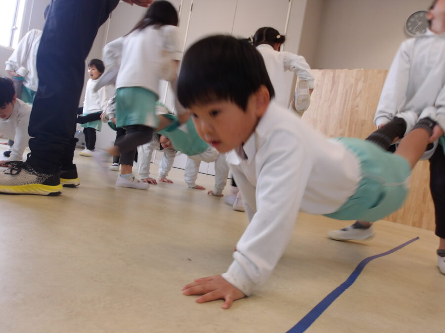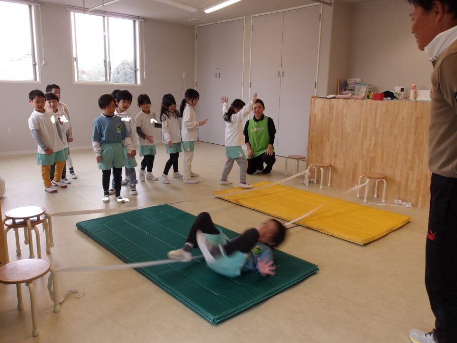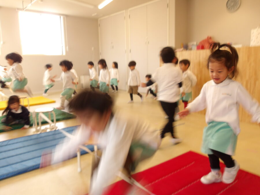 そら組さんは紐の上をぴょんっ!と跳んだり、お友だちを跳び越える挑戦をしましたよ![]()