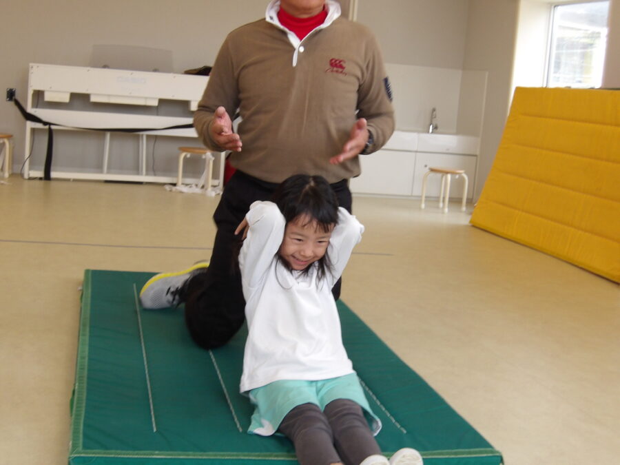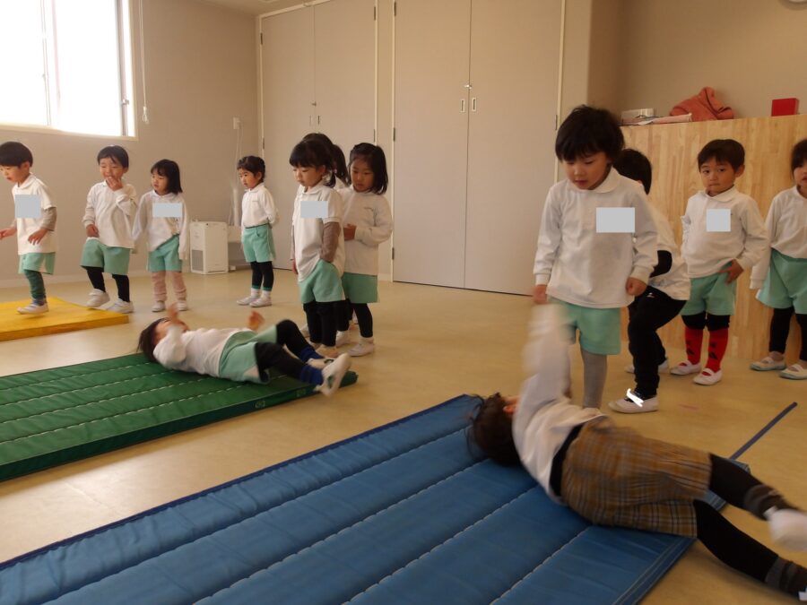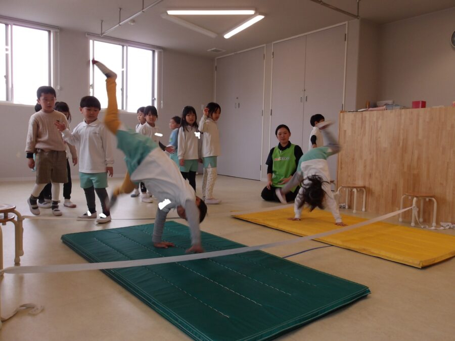 後転と側転に挑戦しました!手の位置や身体の動かし方を確認しながら回りましたよ!