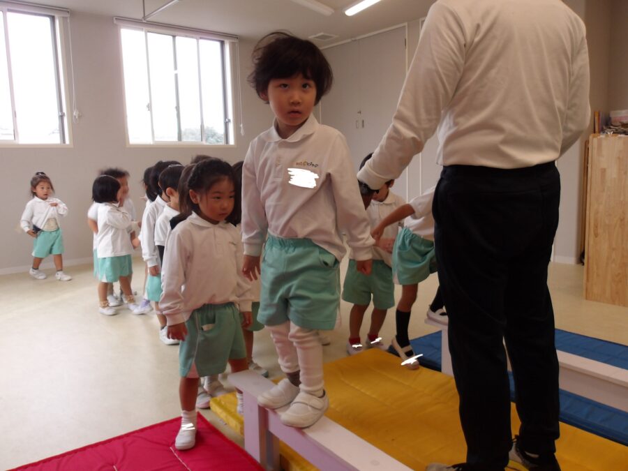 まずは平均台に登って歩きました🚶