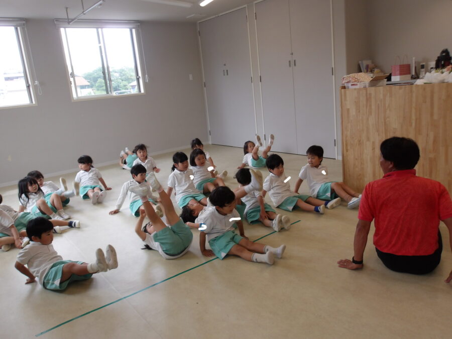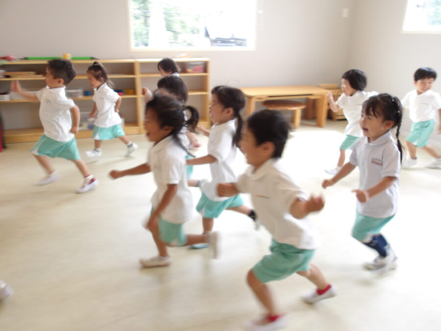“よーいどん”のポーズで先生にタッチするかけっこもしましたよ