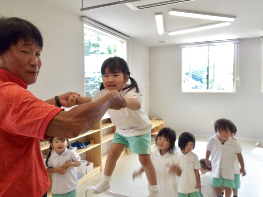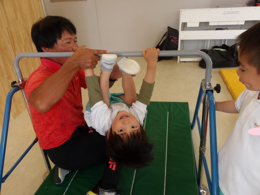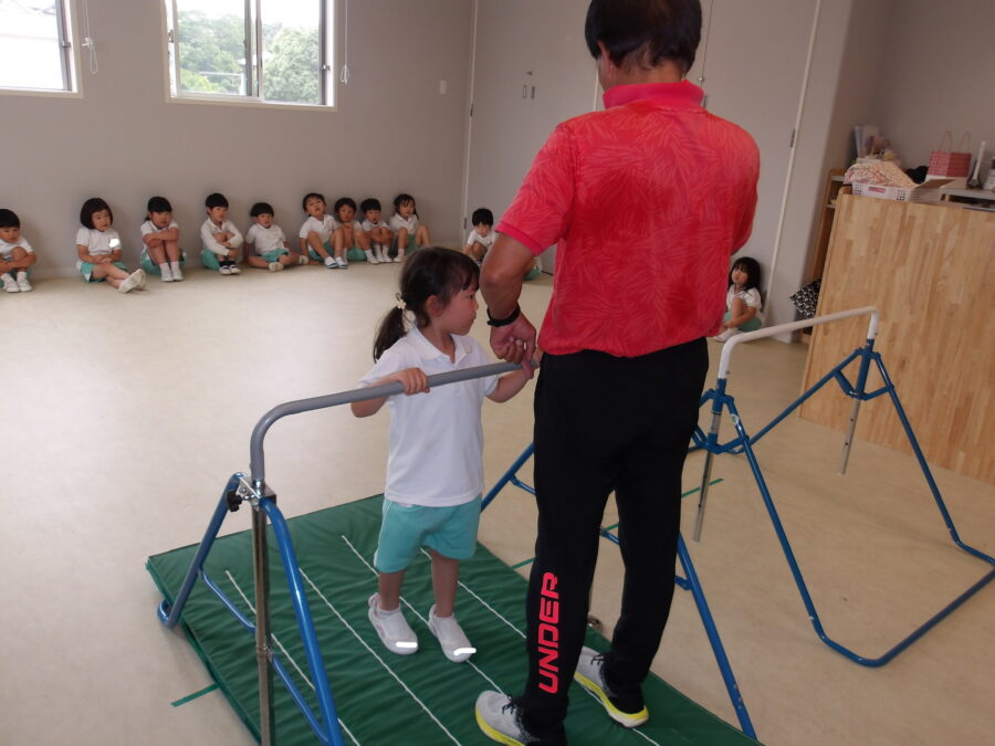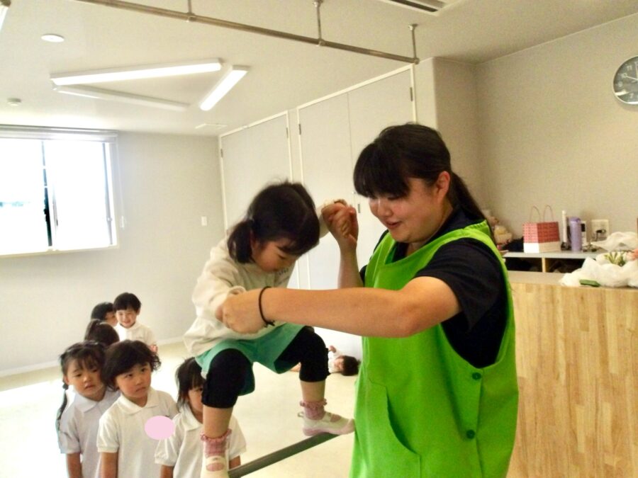 足を上げるところを見て「少し怖い…」と教えてくれる子もいましたが、先生に支えて貰い、一緒に回ると「できたー」と嬉しそうに教えてくれました