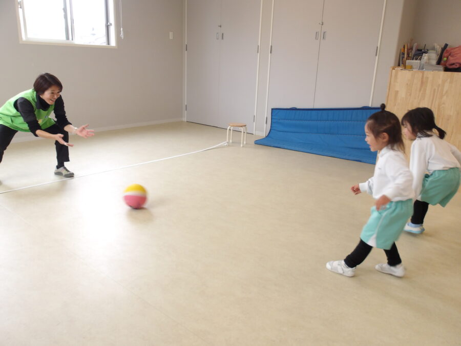 ボールは速かったり、小さくてみんなで隠れてしまったり…足に当たってしまう子もいて難しいそうでしたが、頑張って挑戦していました💪✨