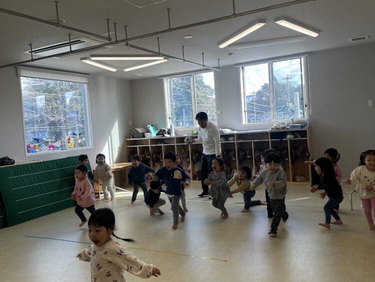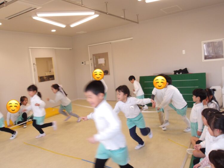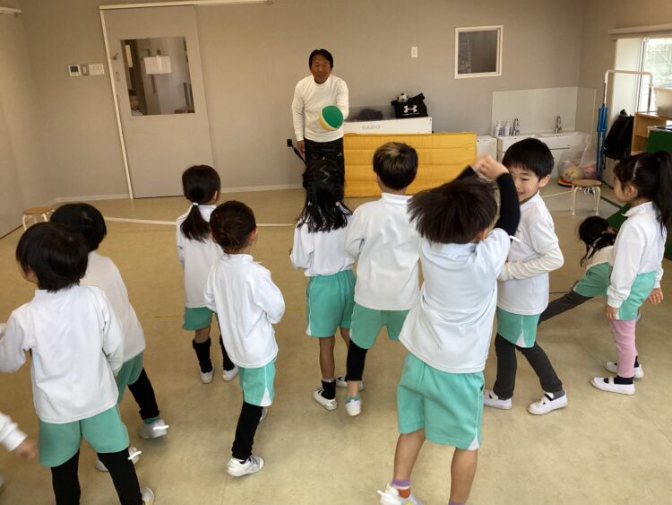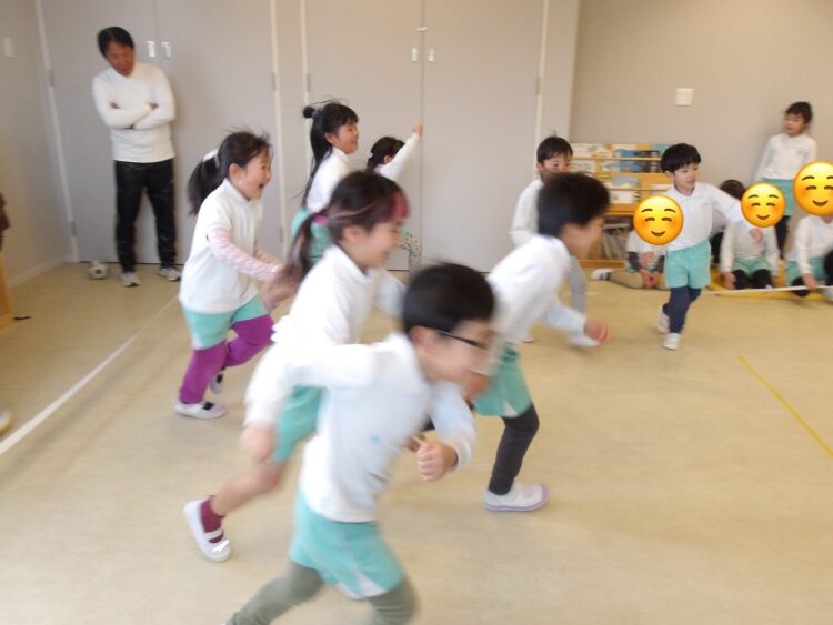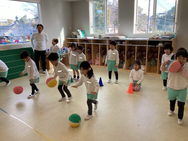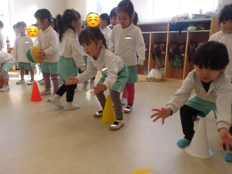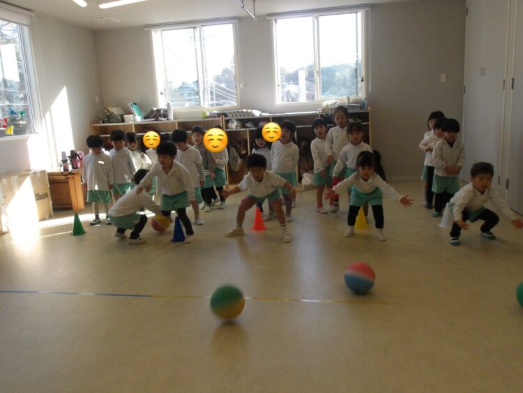 にじ組さんは、先生たちが投げるボールに当たらないように逃げるゲームをしました!みんな当たらないように一生懸命走っていました✨