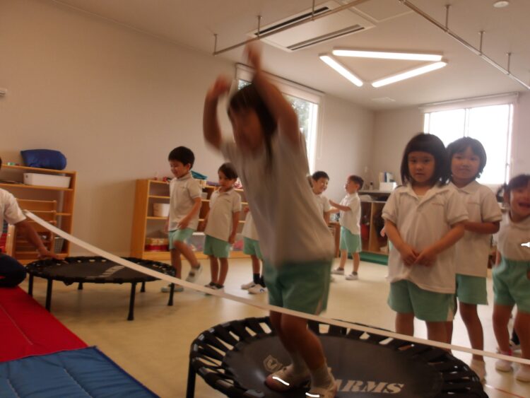 にじ組は手押し車やトランポリンなど、初挑戦のもが多くみんな嬉しそうでした!