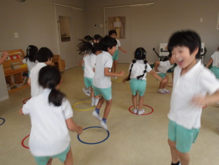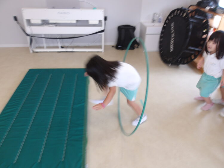 そら組さんは輪っかキャッチやフラフープくぐり、トランポリンなどいろいろなことに挑戦しました!うまくできたことをとても喜んでいました![]()