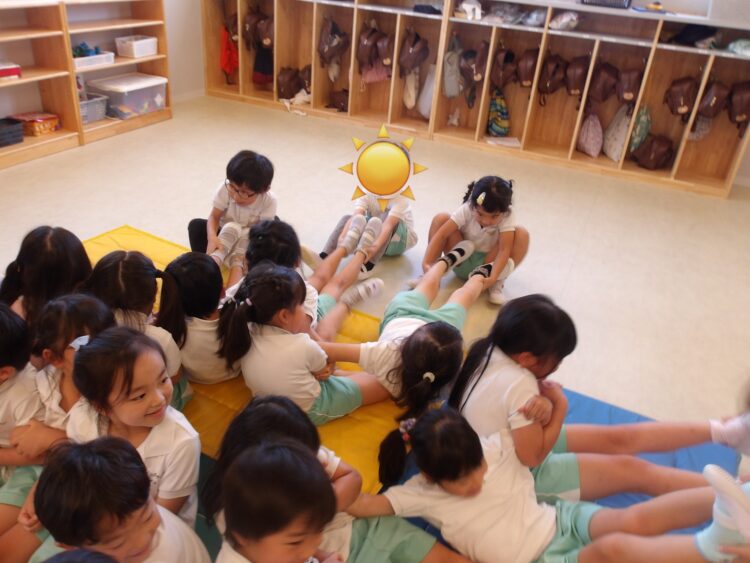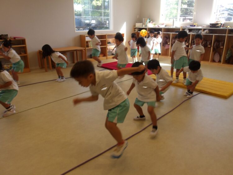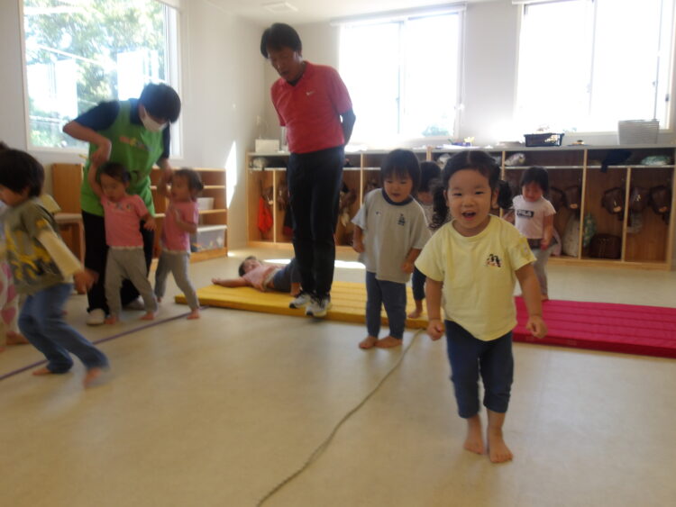 そら組はジャンプしたり、手の力を使っていろんなチャレンジをしました!