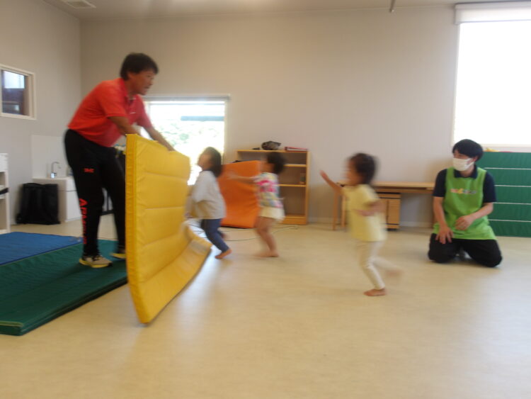 最後はみんなで体操の先生が持っているマットを押していきます💪
