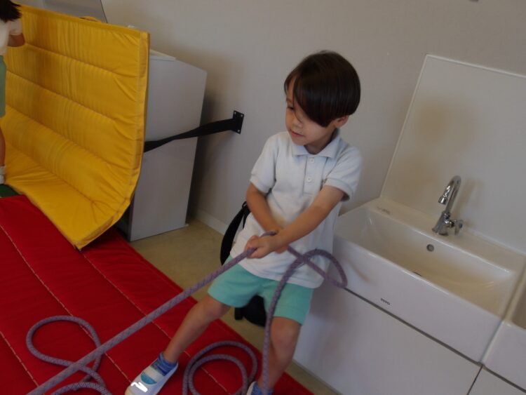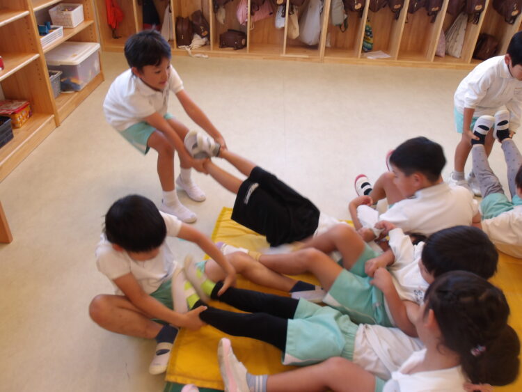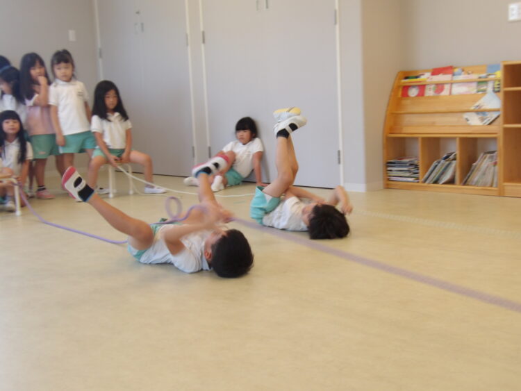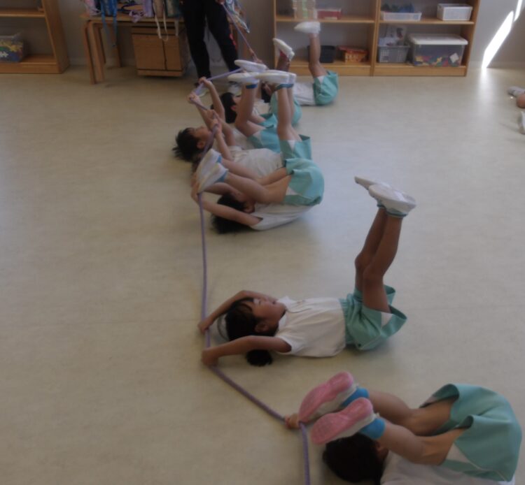 にじ組は引っ張ったり、押したり、捕まり続けたりと腕の力をいっぱい使いました💪