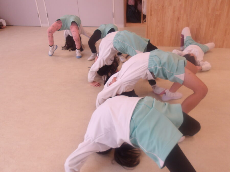 壁に足をつけたほうがわかりやすい!と気づき、壁一列でブリッヂをしました☺️
