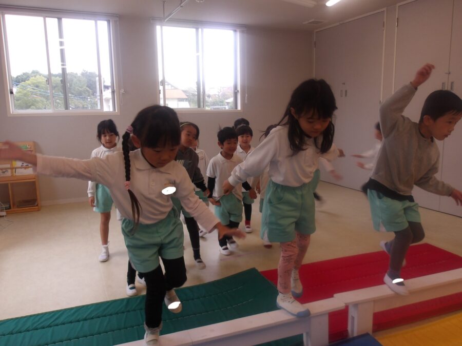次は平均台の上でバランス取り