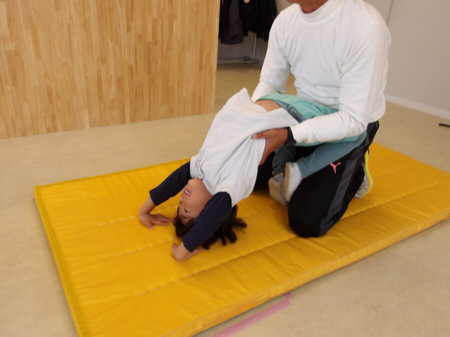 マットにつく手の位置を講師の先生と一緒に確認しました