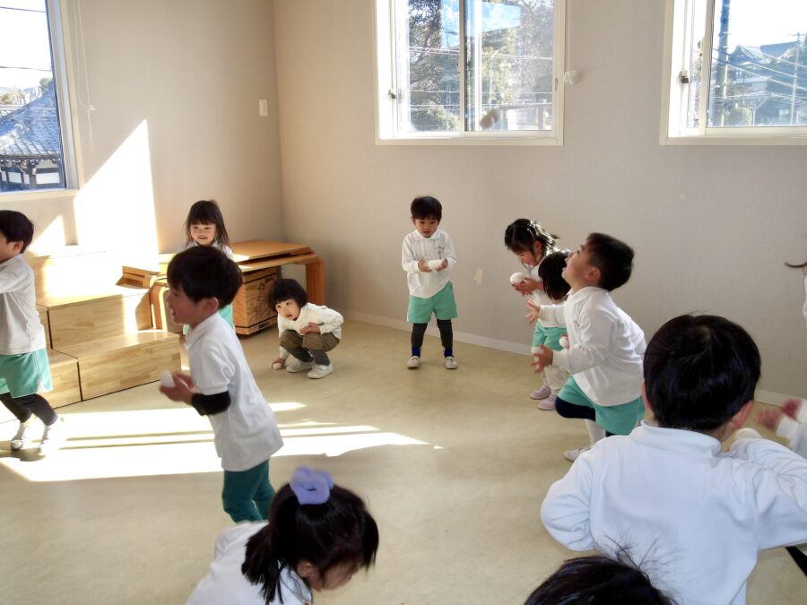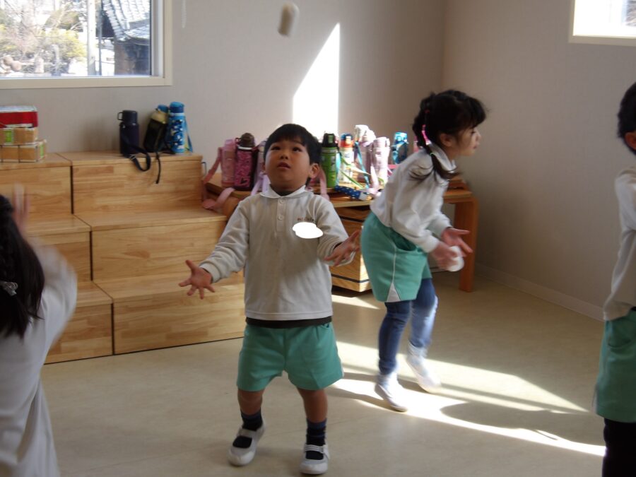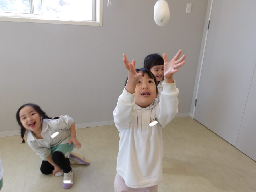 そら組さんは…お手玉を上に投げてキャッチ!