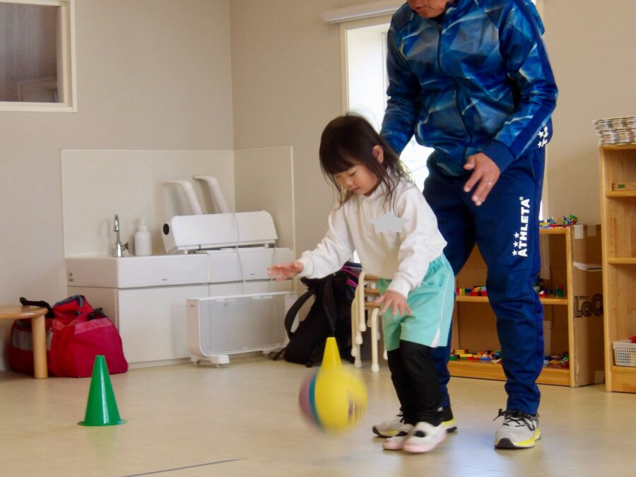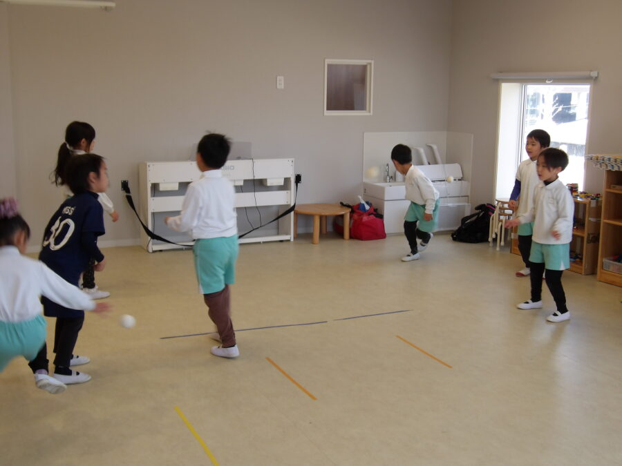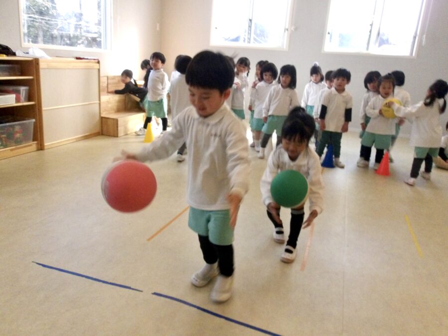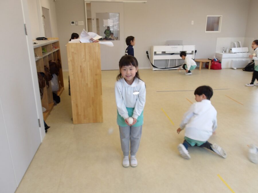 小さいボールだったので苦戦はしていましたが、上手にできている子の真似をしてたくさんキャッチできていました☺️