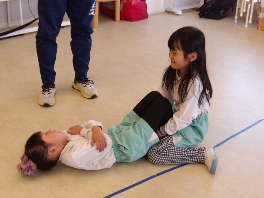 たいよう組さんは2人1組になって腹筋と背筋をしました!