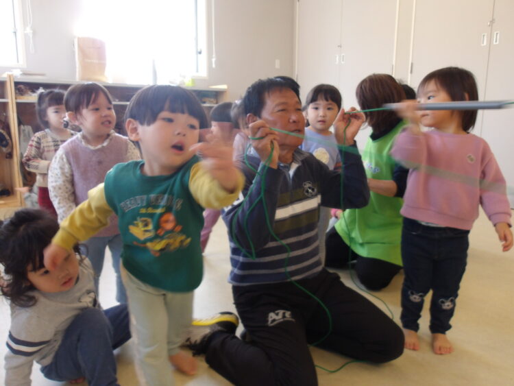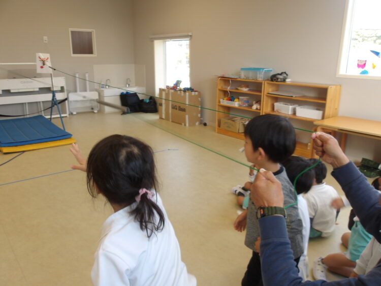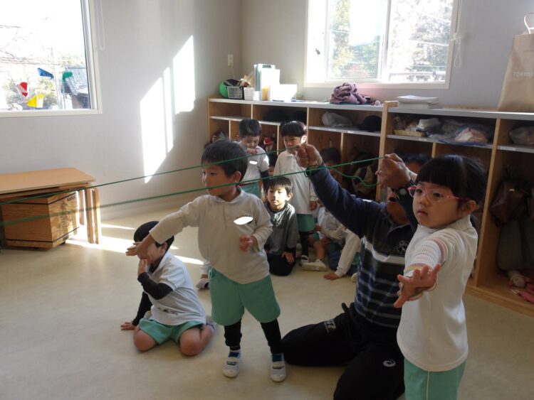 最後はみんなで縄を引っ張って体操の先生を囲んでいました!