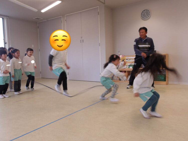 そら組さんは3人1組になって大縄に当たらない様に走ったり、ジャンプをしました!