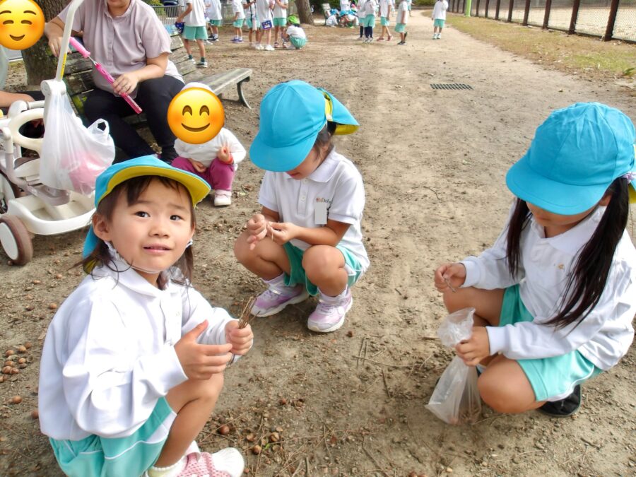 いつもと違う入り口から入り…みんなで綺麗な葉っぱやどんぐりなどを探しました![]()