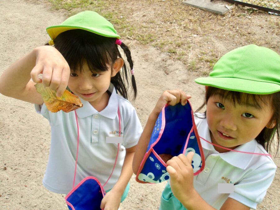 「見てー、虹みたいな葉っぱがあったよ
