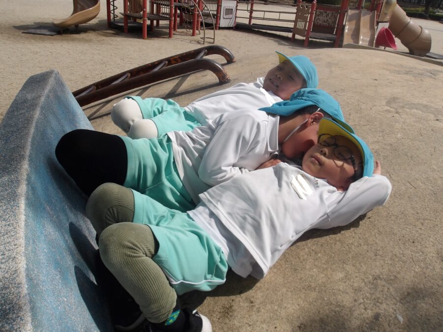 「あったかくて気持ちいい〜」お昼寝ごっこをしている子もいました![]()
