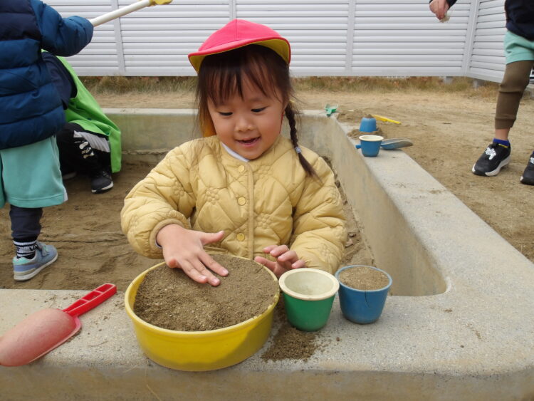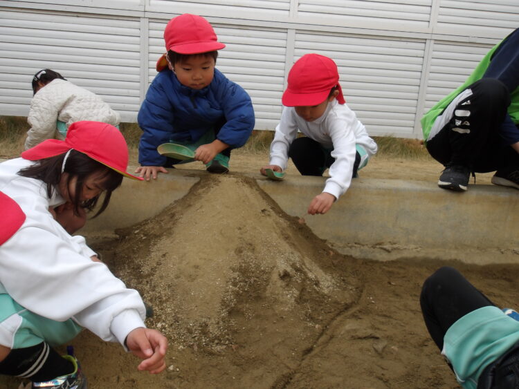 園庭で遊んだよ! 今日はにじ組さんとそら組さんで園庭でたくさん遊びました! 鬼ごっこをしたり、泥団子作りに夢中になったり、 お友だちと力を合わせて大きなお山づくりを楽しんだり たくさん楽しんでいた子どもたちでした カテゴリ: 覚王山(2~3歳), 覚王山(4~5歳) タグ: