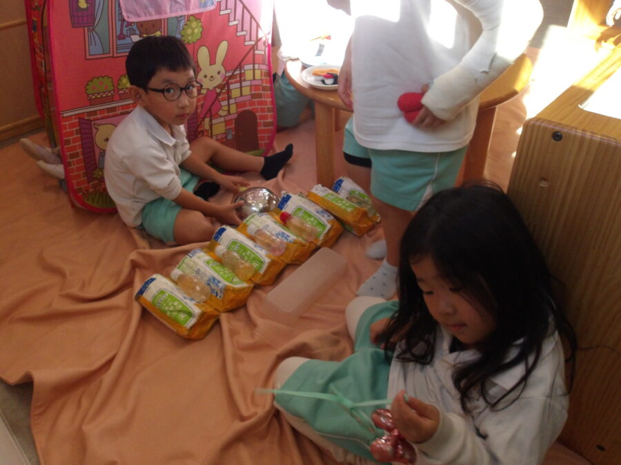 お部屋では自由工作やお絵描き、おままごと等を楽しみました![]()