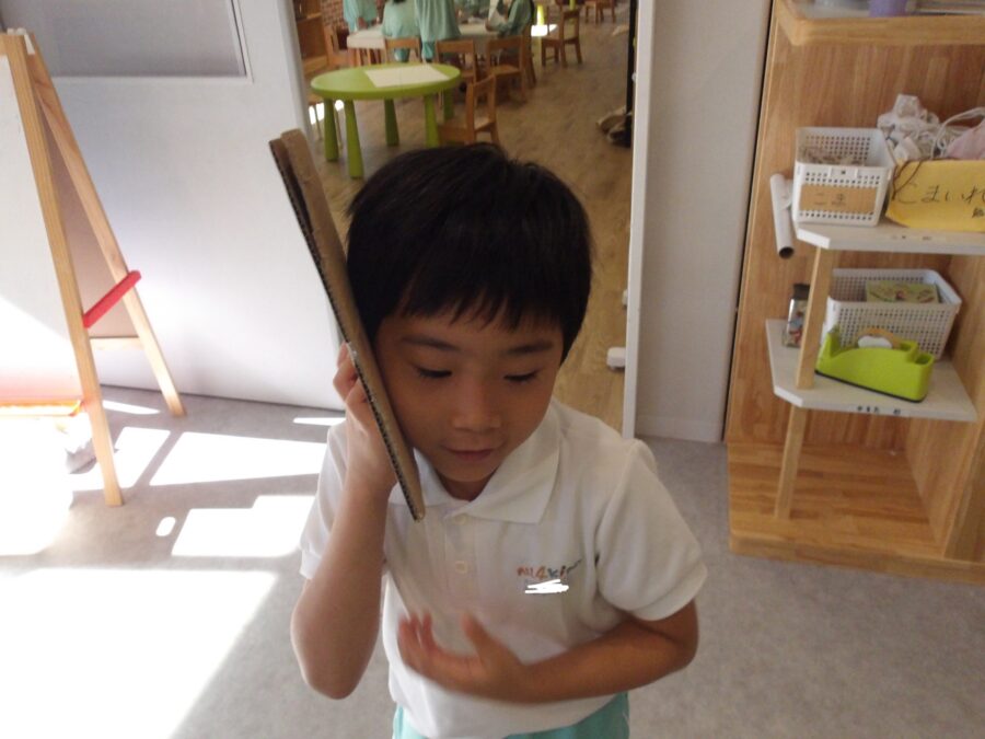 「もしもし〜」と電話やサーフボードにも変身できる創作品の完成![]()