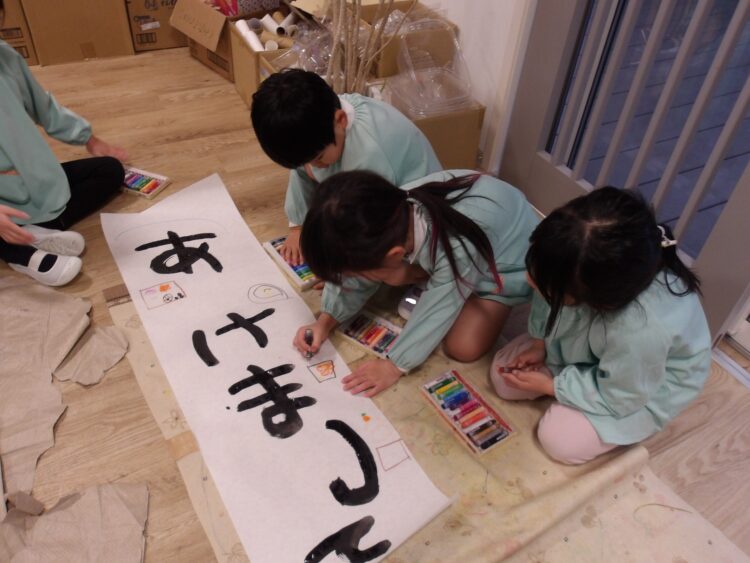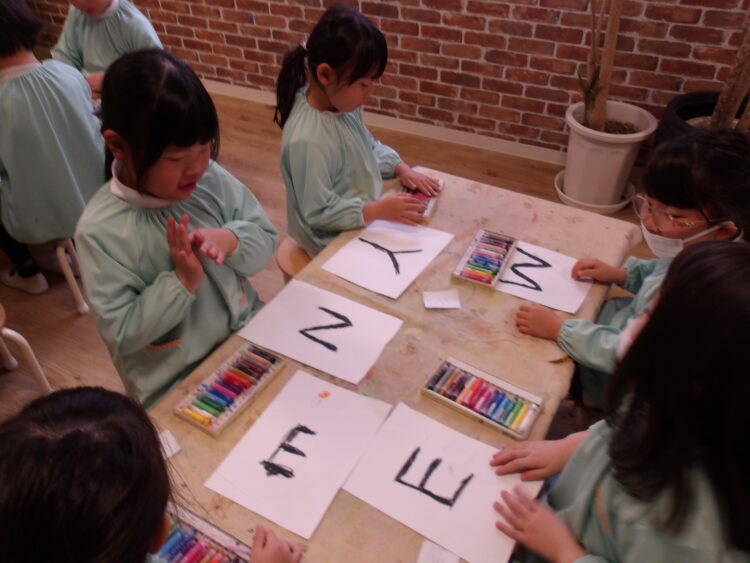 画用紙や半紙に文字やイラストを描き、素敵な作品をつくりました🎨