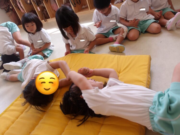 マットの上をお友だちと手を繋いでゴロゴロ転がったり、  平均台を飛び越えたり、 跳び箱を跳んだり、 障害物くぐりをしたり、運動遊びを楽しみました 他にも粘土やお絵描き、かるたなど好きな遊びをお友だちと一緒に楽しむ姿がありました☺️ 楽しくて大盛り上がりなみんなでした😆