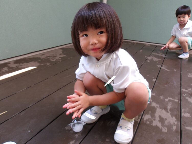 「冷たい!」と言いながらも、氷の冷たさや感触を味わっていたみんなでした![]()